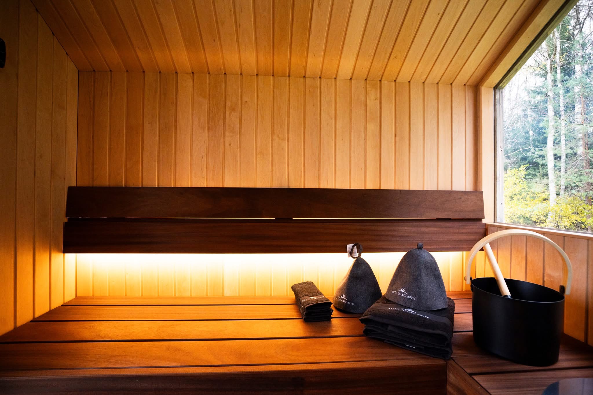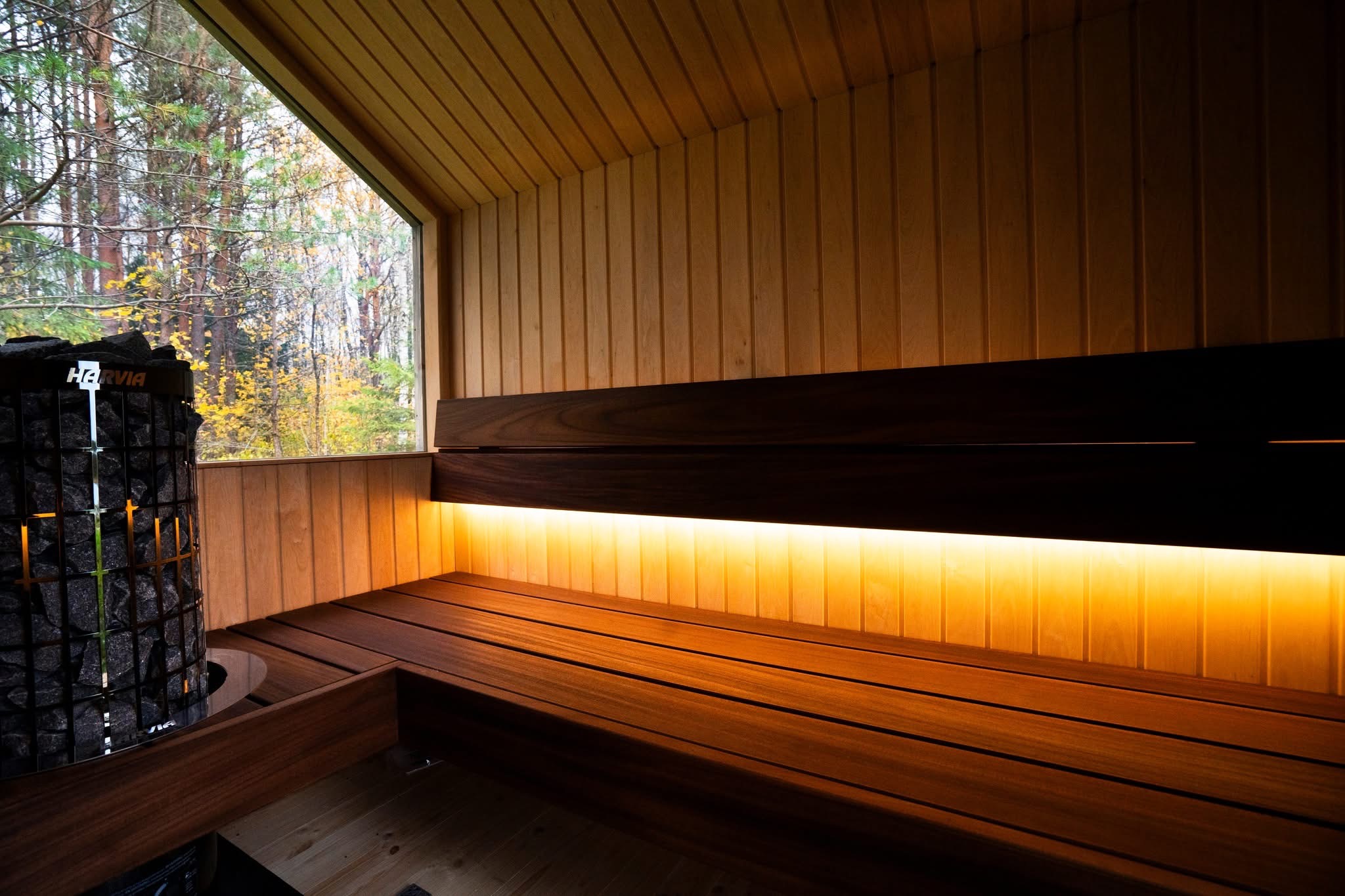 • Wandmaterial: thermisch behandeltes Fichtenholz