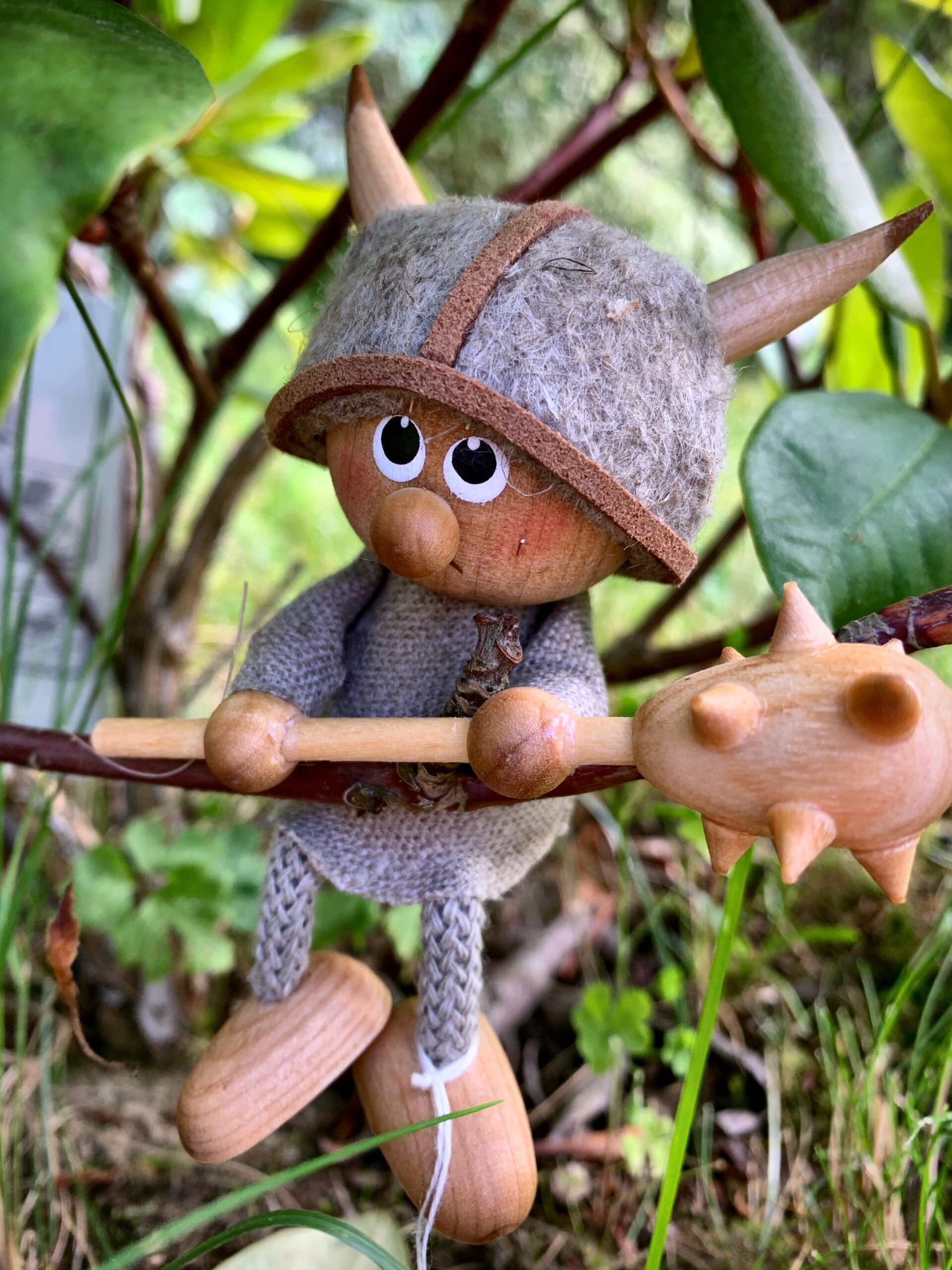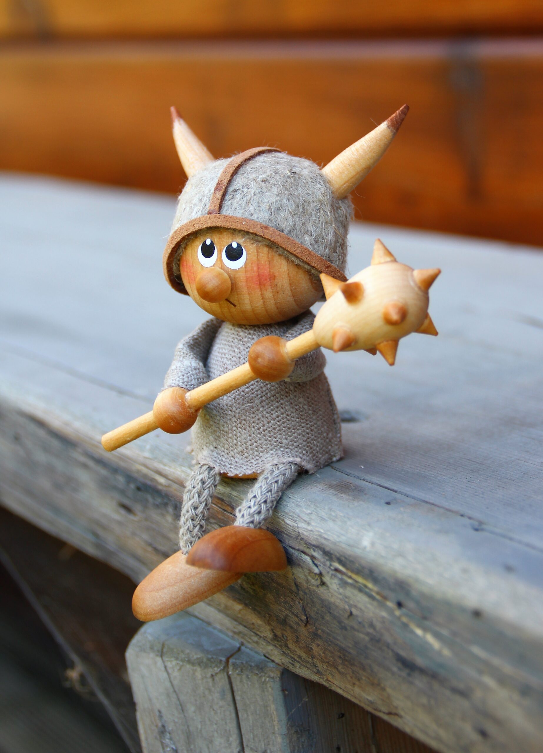 Wikingerjunge sitzend mit Keule
